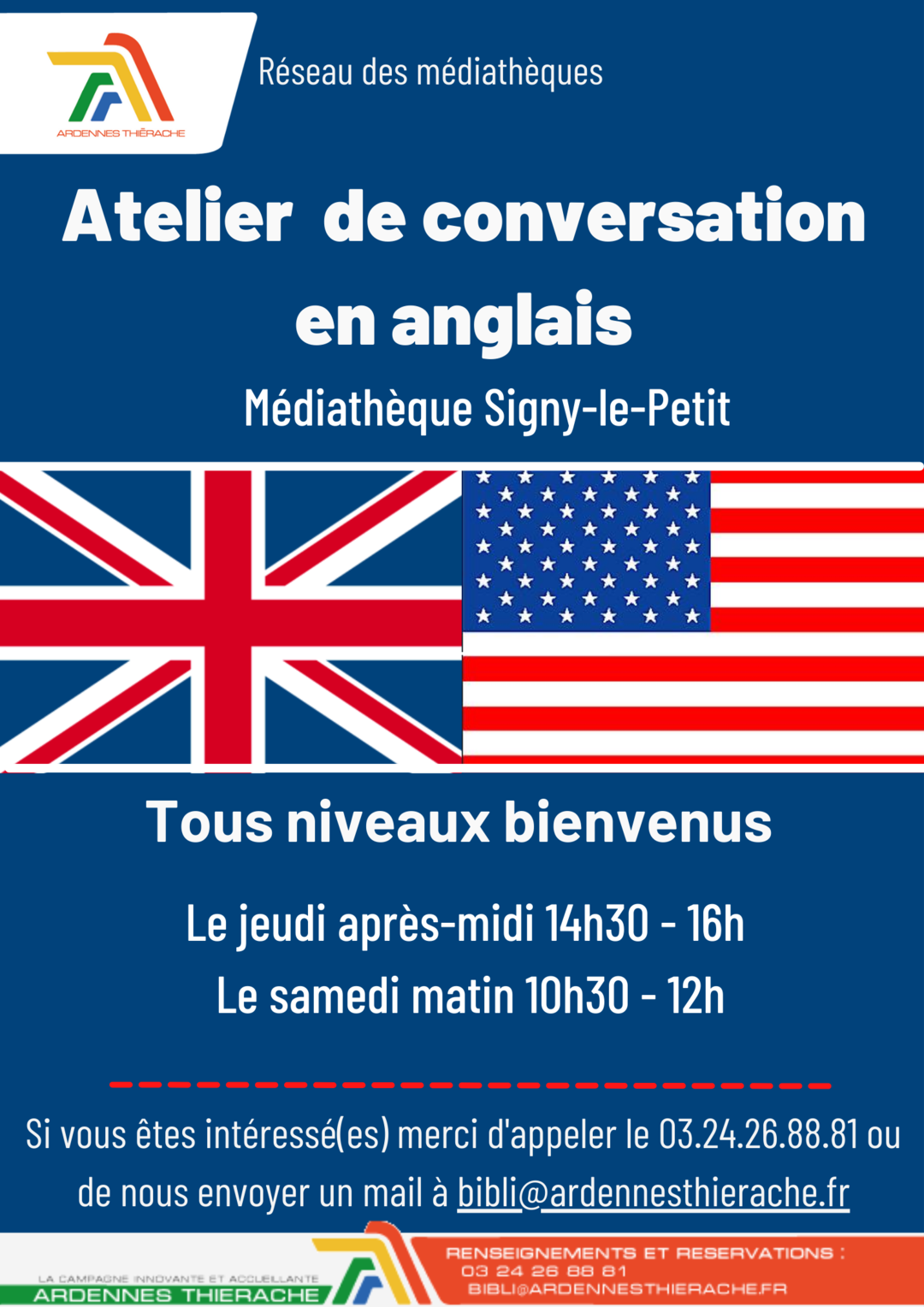 Les ateliers de conversation en anglais reprennent donc tous les jeudi à partir de 14h30 et les samedi à partir de 10h30.