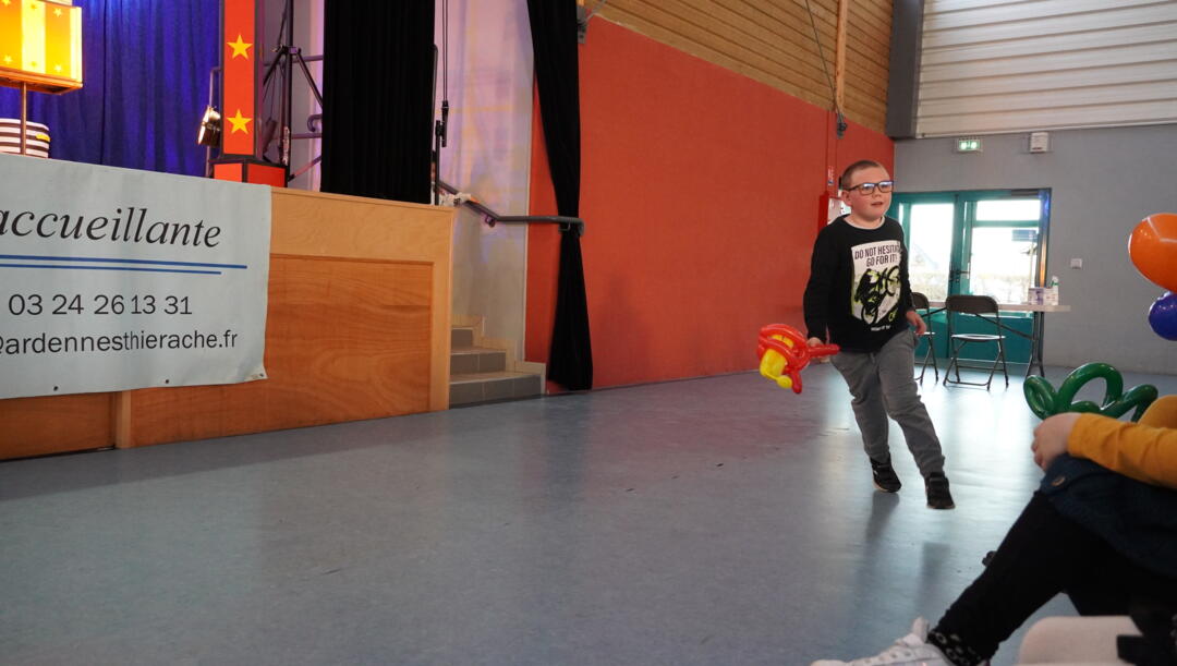 15h30 : c’est l’heure du show ! Fredini et Pepito nous emmènent dans l’univers du cirque des années 1800 avec de la magie, du jonglage et un numéro de clown ! Certains enfants sont même montés sur scène pour participer aux tours et aux numéros de magie. Les 2 clowns récompensaient les jeunes magiciens du dimanche par des petits cadeaux : ballons doudous etc…