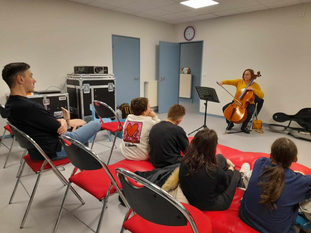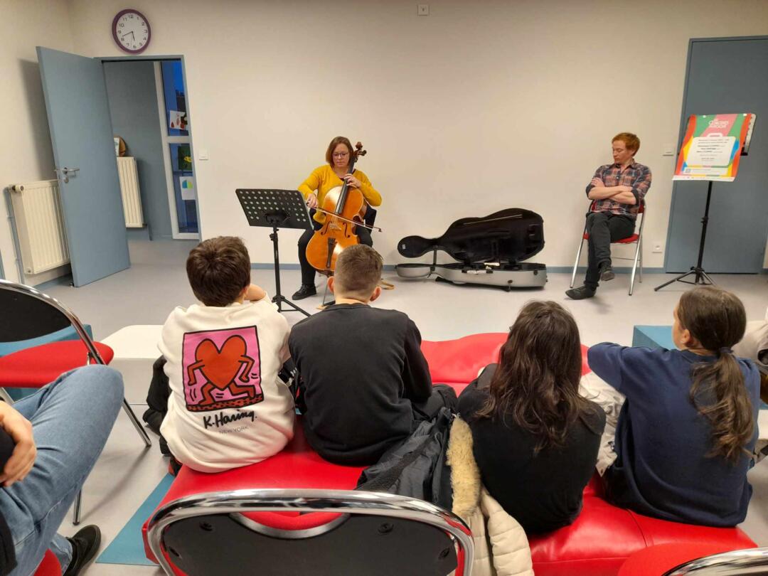 La journée s’est clôturée en beauté à la nouvelle médiathèque de Maubert-Fontaine. À partir de 17h30, une séance tout public a été organisée, ouverte à tous ceux qui souhaitaient vivre un moment musical enrichissant. Cette séance était également l’occasion d’inviter les internes du lycée Notre Dame de Maubert-Fontaine à se joindre à cette expérience unique.