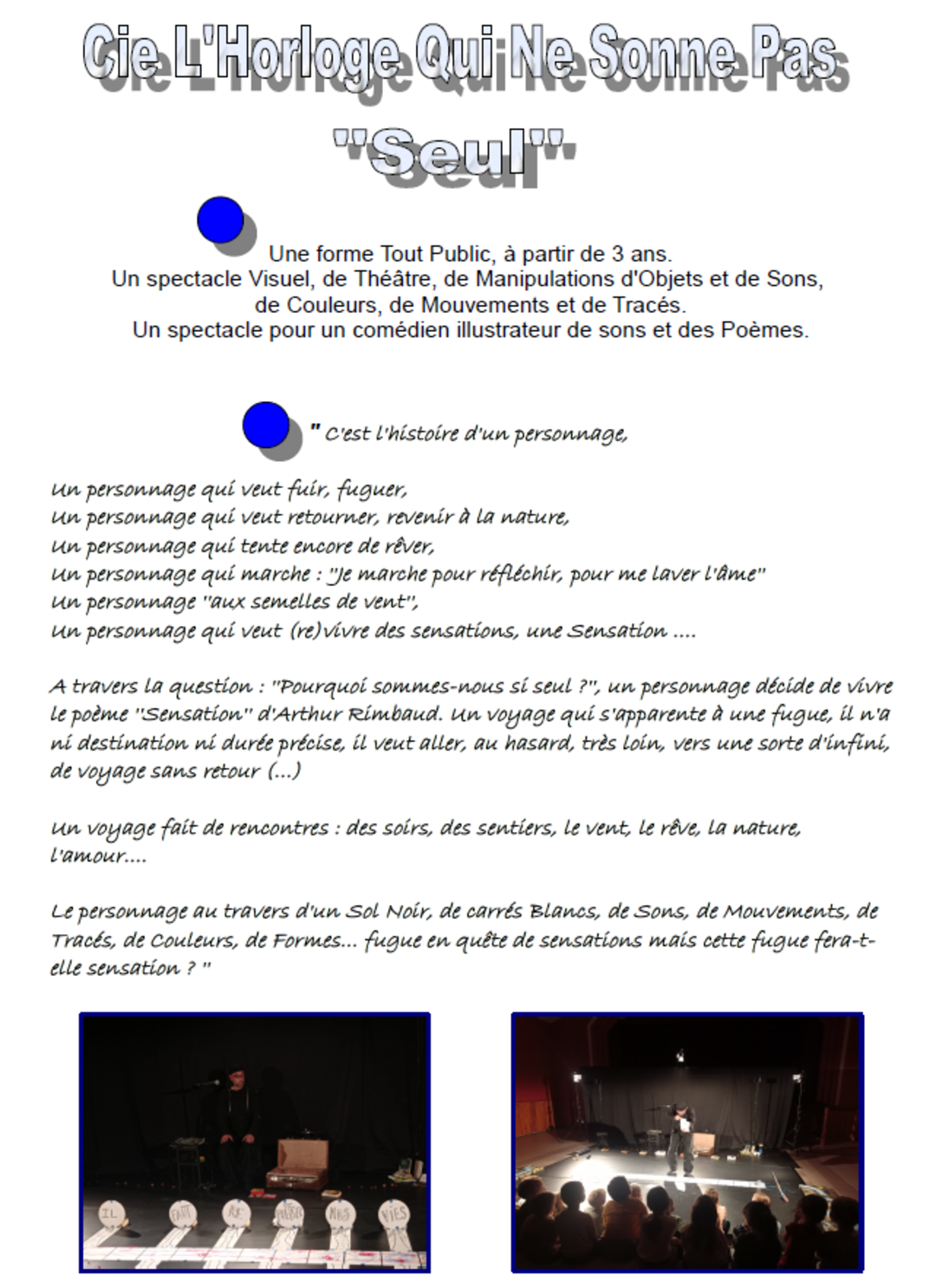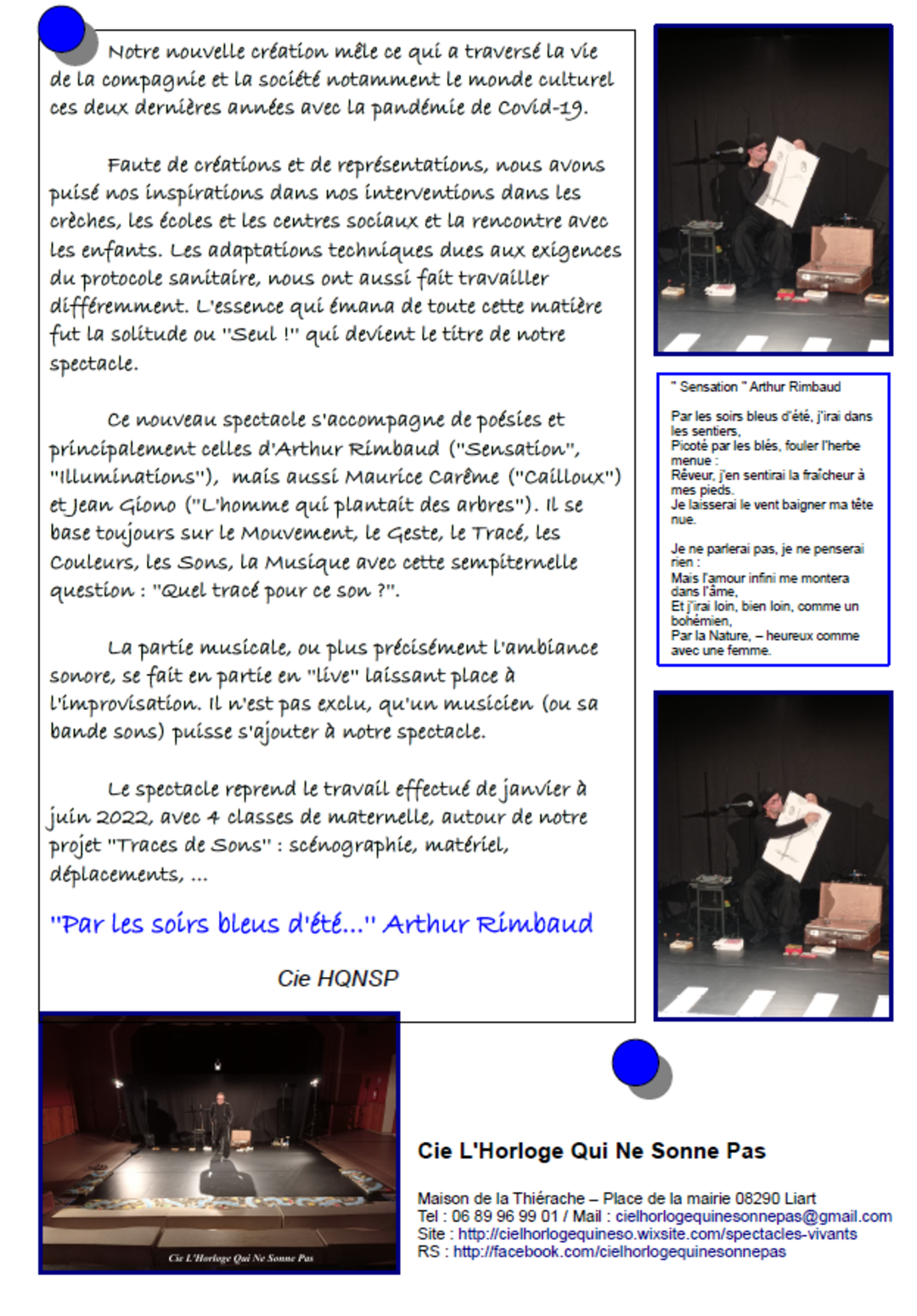 La compagnie L’Horloge qui ne sonne pas, compagnie professionnelle installée Liart, qui va bientôt fêter ses 10 ans, a présenté sa nouvelle création intitulée Seul.