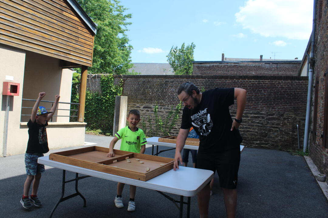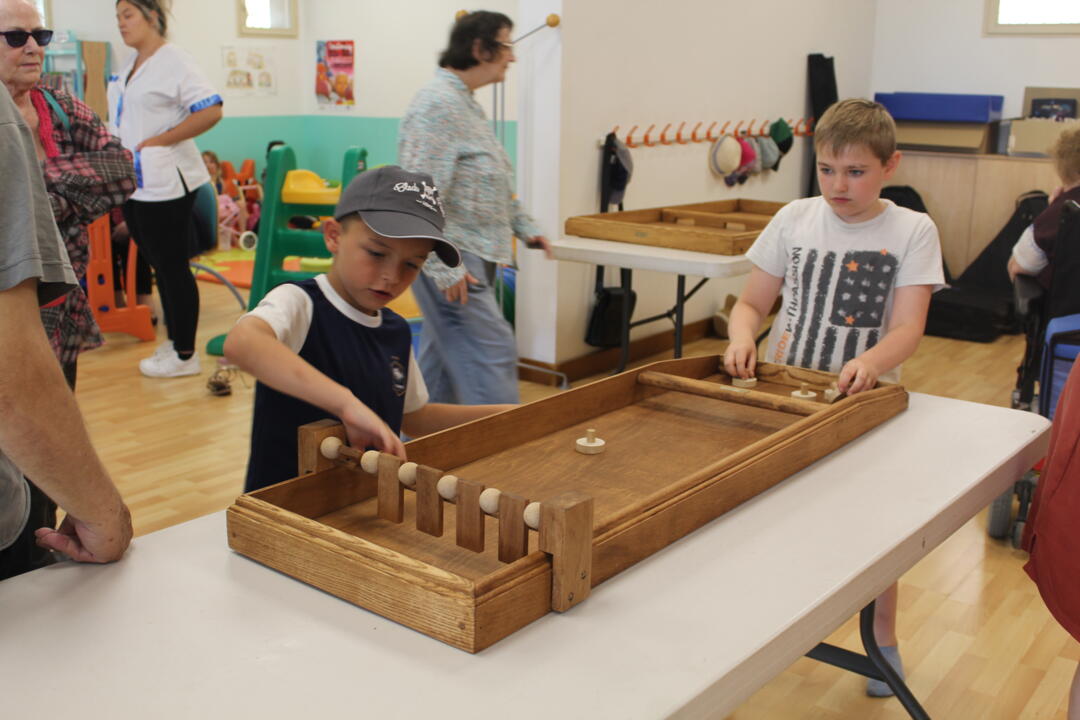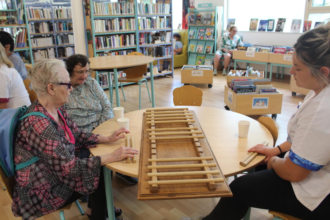 Les enfants des centres de loisirs du mercredi d’Auvillers-les-Forges et de Rouvroy sur-Audry, ainsi que des résidents de l’EHPAD de Signy-le-Petit se sont retrouvés mercredi 14 juin à la médiathèque pour s’affronter dans la bonne humeur à une sélection de jeux, notamment une dizaine de grands jeux en bois prêtés par la communauté de communes et les Bee Bots de la conseillère numérique Karin Ninin.