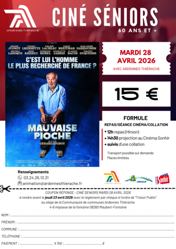 - Projection à 14h30 au Cinéma Sonhir – 10 rue Charles de Gaulle à Hirson