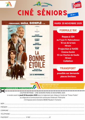 Projection à 14h30 au Cinéma Sonhir – 10 rue Charles de Gaulle à Hirson