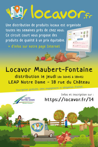 Distribution le Jeudi de 16h45 à 18h45 au Lycée LEAP Notre Dame – 18 Rue du Château 08260 MAUBERT-FONTAINE