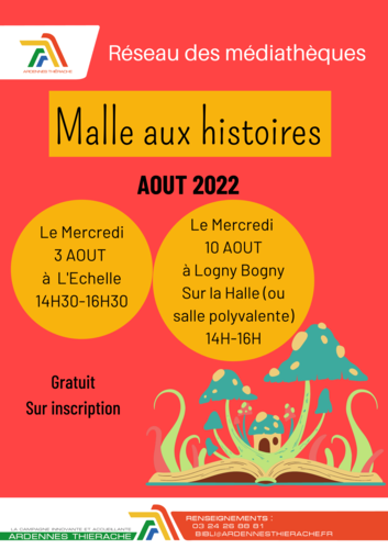 Homepage Agenda Malle aux histoires Share Malle aux histoires signy-le-petit Logny Bogny, Halle ou salle polyvalente Wednesday 10 August 2022 From 14:00 to 16:00 Contact Médiathèques rue du prieuré, 08380 signy-le-petit 0324268881 bibli@ardennesthierache.fr Itinerary