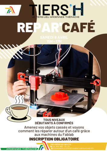 Ne jetez plus! Venez plutôt déguster un thé ou un café au Tiers’H, le tiers-lieu Ardennes Thiérache, nous en profiterons pour réflechir à des solutions afin de réparer votre objet à l’aide des machines du Fablab.