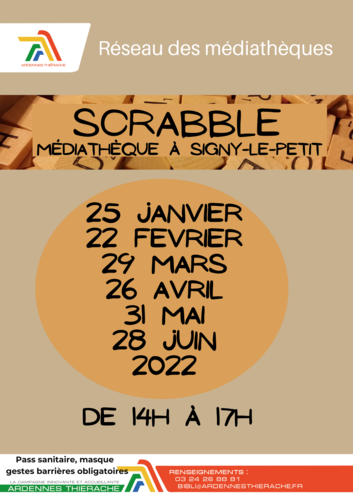 Le réseau des médiathèques vous propose une après-midi scrabble le mardi 25 janvier de 14h à 17h.