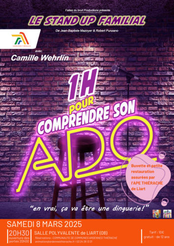 Un stand Up à voir en famille, dans lequel nous étudierons l’Ado, ce petit être tout mignon qui peut se transformer en Hulk à la moindre contrariété. Attention les boomers en prendront aussi pour leur grade !