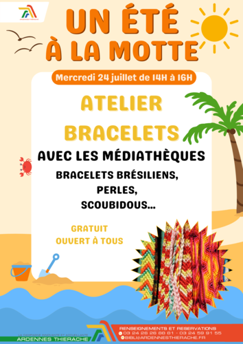 Homepage Agenda Un Été à la Motte - Atelier Bracelet Share Un Été à la Motte - Atelier Bracelet Signy-Le-Petit Étang de la Motte Wednesday 24 July 2024 From 14:00 to 16:00 Contact , 08380 Signy-Le-Petit