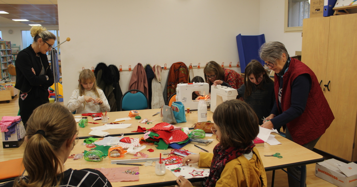 Après l’atelier de peinture, un atelier de couture spécial Noël était proposé à la médiathèque de Signy-le-Petit.