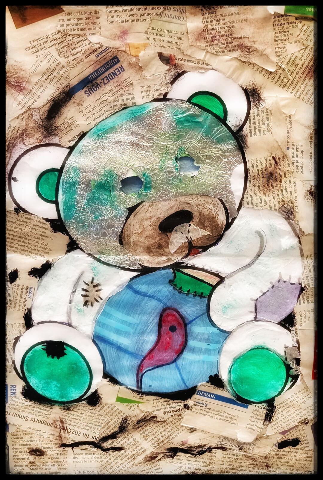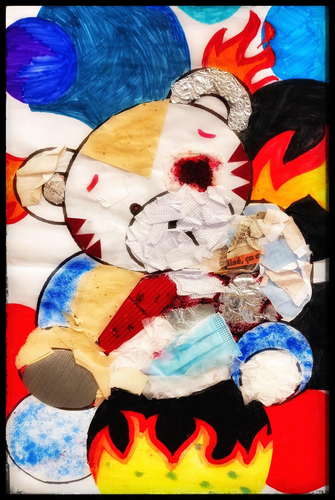 C’est dans le cadre de leur cours d’Arts Plastiques que les collégiens ont travaillé sur ce projet. Ils avaient à leur disposition une simple photocopie des contours d’un ours en peluche, et devaient transformer ces figures innocentes pour leur donner une apparence inquiétante.
