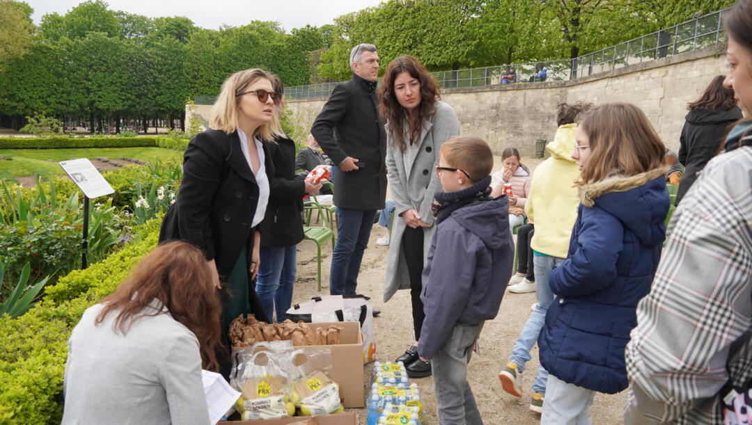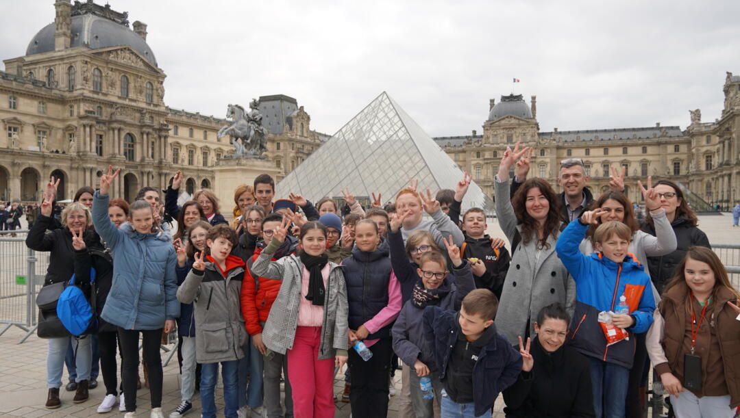 Après une pause déjeuner aux Jardins des Tuileries, le groupe se rend devant la Pyramide du Louvre et immortalise le moment avec une photo.