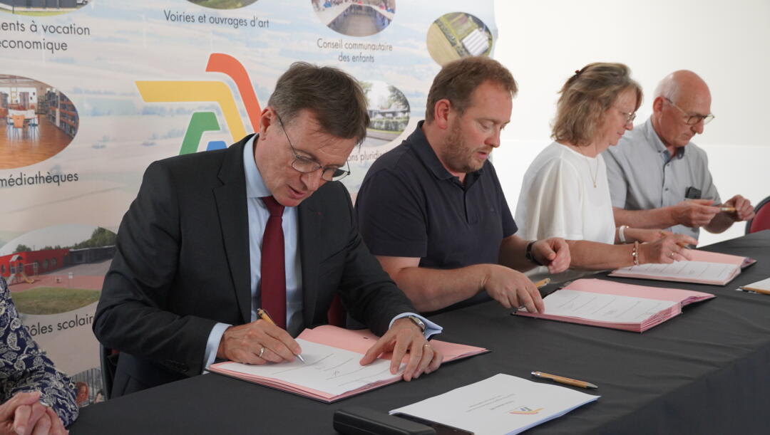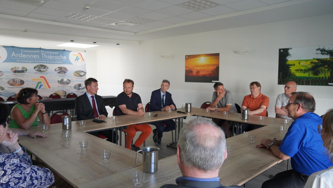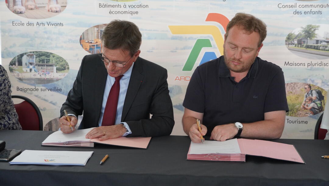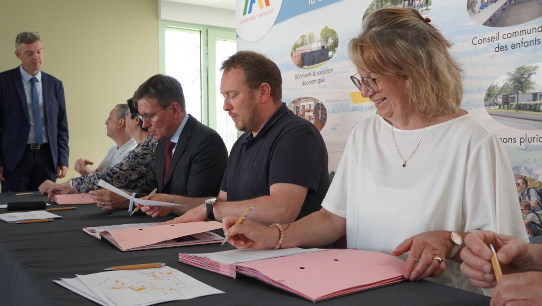 Après une visite pour présenter les points d’intérêts du territoire, comme les Broisses-Basses ou l’Étang de la Motte, Alain Bucquet, Préfet des Ardennes, Miguel Leroy, Président de la Communauté de communes, et les maires des communes signataires de l’Opération de Revitalisation du Territoire (ORT), se sont retrouvés au gîte de groupe Aux Lits Ardennais à Liart pour signer la convention.