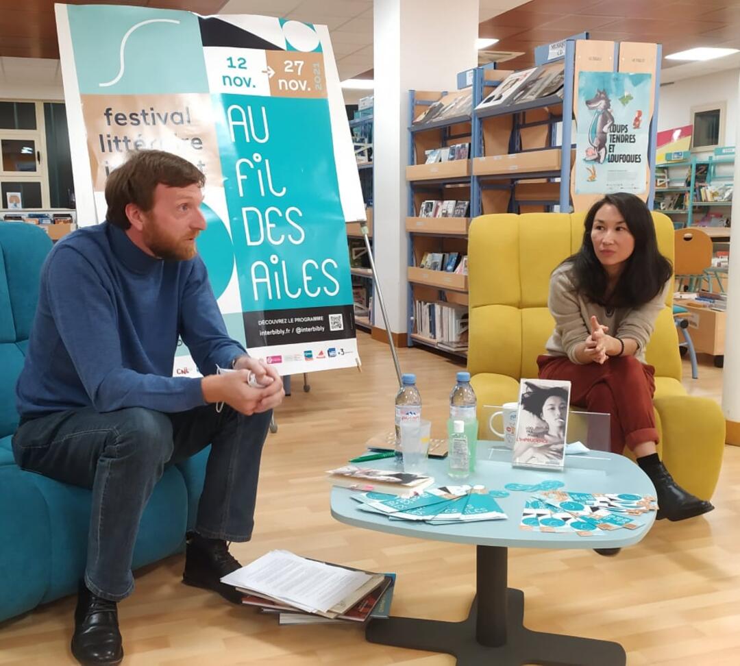 Le jeudi 25 novembre à la médiathèque à Signy-le-Petit Loo Hui Phang a présenté son premier roman « L’Imprudence » ainsi que ses bandes dessinées et romans graphiques dans le cadre du Festival Interbibly. Jean-Rémi François directeur de la BDA a mené l’échange et a permis aux personnes présentes de découvrir cette autrice née au Laos, son univers littéraire où se mêlent la fiction, le récit ainsi qu’une quête d’identité présente dans tous ces ouvrages.
