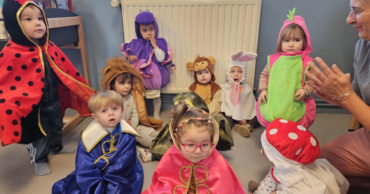 Accompagnés de leurs assistantes maternelles, les enfants ont plongé dans l’univers festif du carnaval avec une malle remplie de costumes rigolos et colorés, prêts à se déguiser en tout ce qu’ils voulaient !