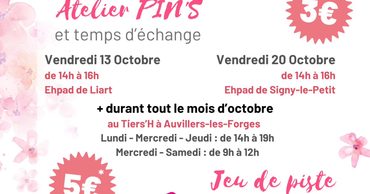 Pour contribuer à cette cause importante, la Maison de la Thiérache et Tiers’H vous invitent à participer à des ateliers PINS originaux. Ces ateliers promettent des heures de plaisir et de créativité, tout en soutenant la recherche et la sensibilisation contre le cancer du sein.