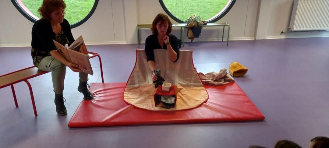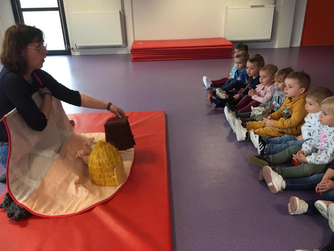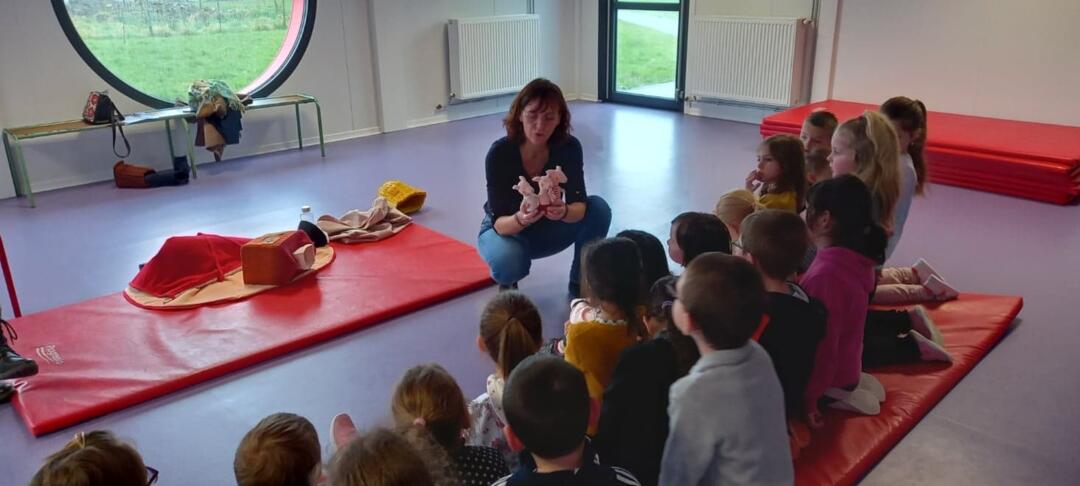 Le conte en tissu des Trois Petits Cochons, prêté par la bibliothèque départementale des Ardennes, s’est déplacé jeudi avec le réseau des médiathèques Ardennes-Thiérache pour une représentation devant les petits enchantés de l’école d’Eteignières.