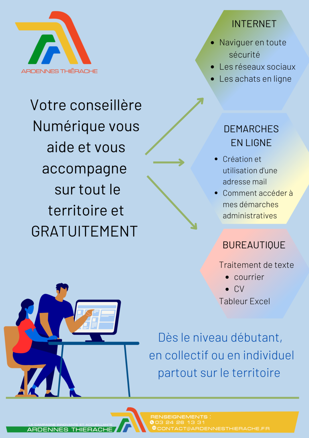 Arrivée en janvier à Ardennes Thiérache, Karin Ninin est la nouvelle Conseillère numérique France Services du territoire. Ce dispositif mis en place dans le cadre du plan France Relance est entièrement financé par l’État.