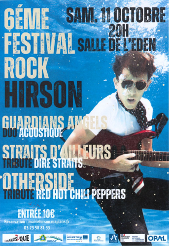 Accueil Réseau des médiathèques 6ÈME FESTIVAL ROCK - HIRSON Partager : 6ÈME FESTIVAL ROCK - HIRSON Hirson Salle de L'Eden - Hirson samedi 11 octobre 2025 à partir de 20:00 jusqu'à 23:00 . Entrée 10€ Contact : , 02500 Hirson 03 23 58 81 33 Réservation : mairiehirson.maplace.fr
