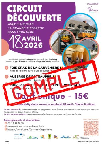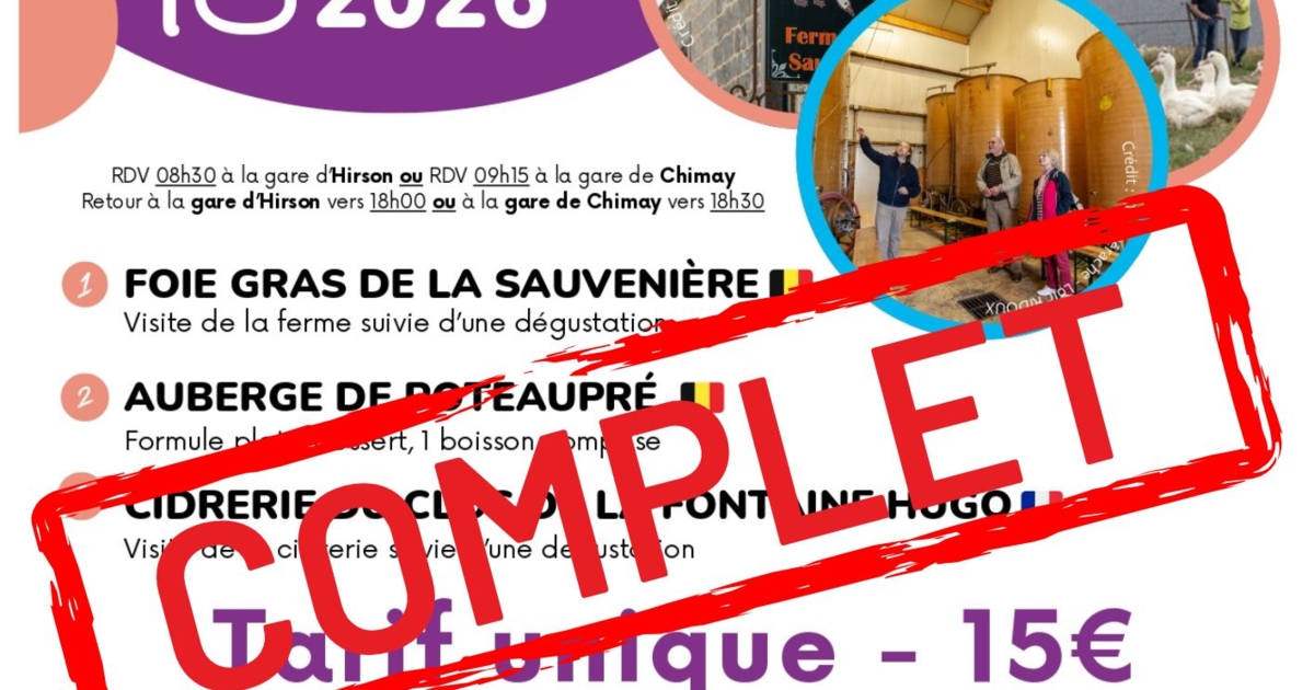 💶 Tarif : 15 € 👉 Comprend : transport en bus (départ d’Hirson ou de Chimay), repas, une boisson, visites guidées… et bien sûr la bonne humeur !