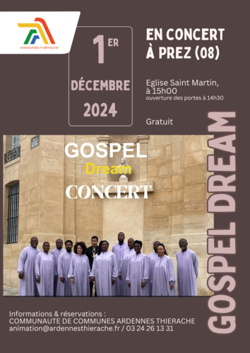 L’église de Prez accueillera un groupe de gospel renommé pour une soirée exceptionnelle. Ce concert unique vous offrira l’occasion de découvrir des voix puissantes et des harmonies émouvantes dans un cadre magnifique. Ne manquez pas cette chance de vivre un moment de joie et d’inspiration en compagnie de ce groupe talentueux.