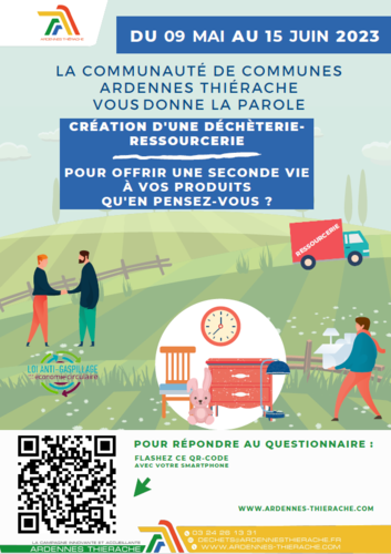 Accueil Agenda Création d'une Déchèterie-Ressourcerie Partager : Création d'une Déchèterie-Ressourcerie Maubert-Fontaine Maubert-Fontaine mardi 09 mai 2023 à partir de 08:00 jusqu'au jeudi 15 juin à 18:00 . Contact : 08260 Maubert-Fontaine Itinéraire