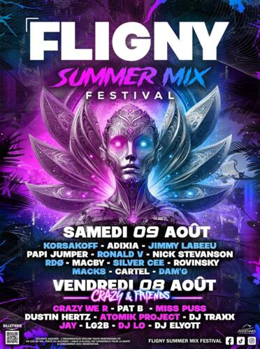 Accueil Agenda FLIGNY SUMMER MIX FESTIVAL Partager : FLIGNY SUMMER MIX FESTIVAL Fligny Fligny vendredi 08 août 2025 à partir de 00:00 jusqu'au samedi 09 août à 23:45 . Contact : , 08380 Fligny