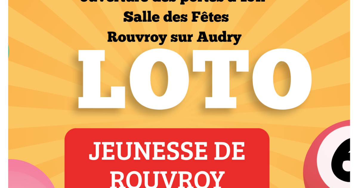 Accueil Agenda LOTO Partager : LOTO Rouvroy-Sur-Audry Salle des Fêtes de Rouvroy-Sur-Audry samedi 11 avril 2026 à partir de 19:00 jusqu'à 23:00 . Ouverture des portes à 19h. Contact : Jeunesse de Rouvroy , 08150 Rouvroy-Sur-Audry Réservation / 06 45 74 79 61