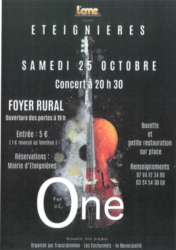 Renseignements : 07 84 12 34 90 / 03 24 54 30 08 Réservations : Mairie d'Éteignières