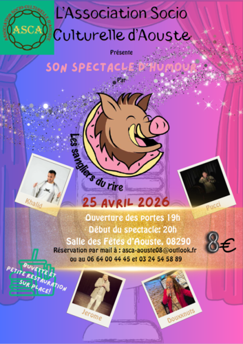Réservation par téléphone : 06 64 00 44 45 et 03 24 54 58 89 Réservation par mail à : asca-aouste08@outlook.fr