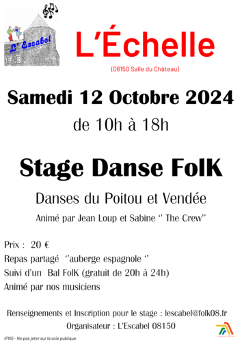Accueil Agenda Stage Danse Folk Partager : Stage Danse Folk 08150 Salle du Château samedi 12 octobre 2024 à partir de 10:00 jusqu'à 18:00 . Contact : L'Escabel 08150 , L'Échelle 08150 lescabel@folk08.fr