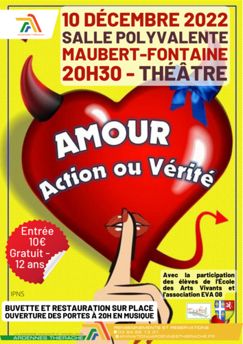 Seriez-vous toujours en couple si vous êtes obligés de dire tout le temps la vérité ? Toute la vérité, rien que la vérité, dites je le jure ! Venez le découvrir à vos risques et périls. Venez rire des pièges du quotidien et de vos petits mensonges. Alors : Action ou Vérité ?