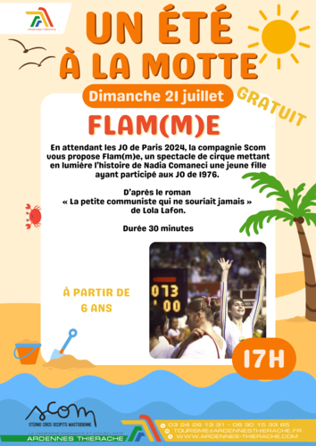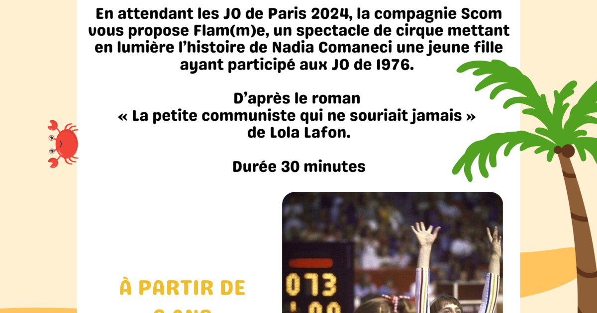 En attendant les JO de Paris 2024, la compagnie Scom vous propose Flam(me)e, un spectacle de cirque mettant en lumière l’histoire de Nadia Comaneci une jeune fille ayant participé aux JO de 1976.