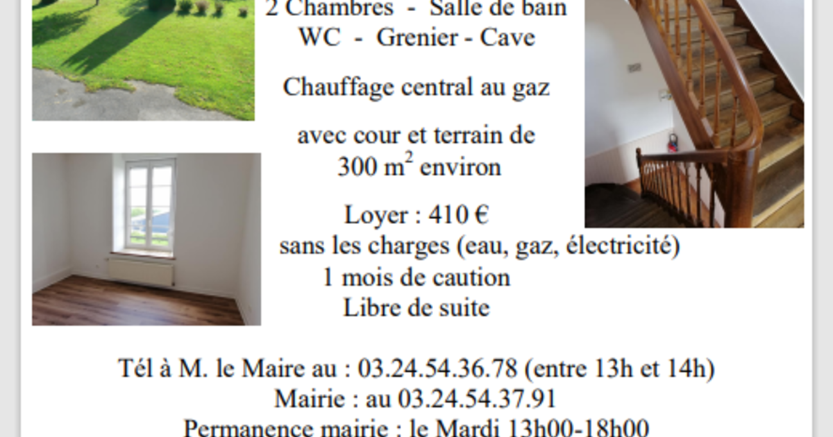 Tél à M. le Maire au : 03.24.54.36.78 (entre 13h et 14h)